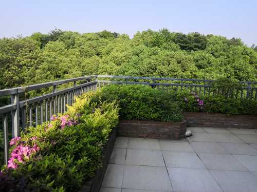 春夏交接的季節(jié),花兒朵朵爭相綻放,視野與周邊的樹林無縫銜接
